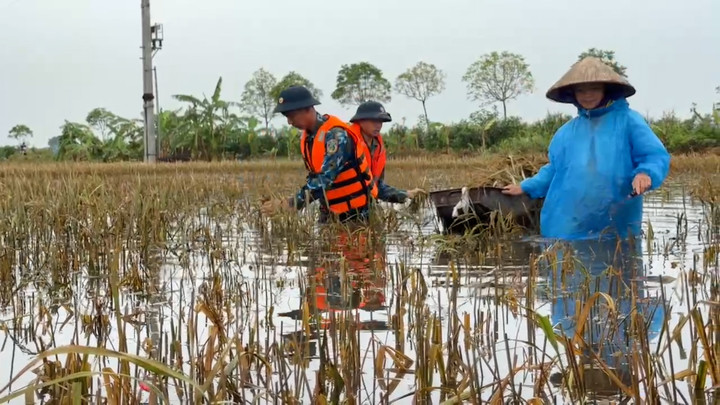 Không quân dầm mình trong nước, chạy đua với thời gian, gặt lúa giúp dân
