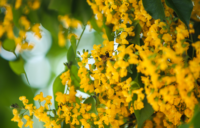 Hoa giáng hương có màu vàng tươi, hương thơm dịu nhẹ.