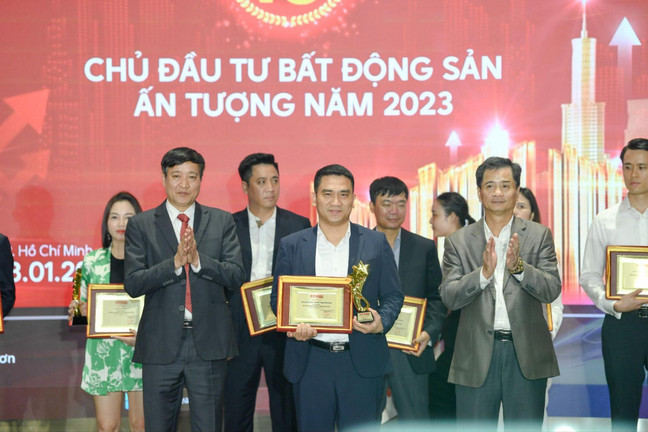 Đại diện Chủ đầu tư dự án Dragon Ocean Đồ Sơn nhận cúp và bằng chứng nhận “Top 10 dự án bất động sản ấn tượng năm 2023”.
