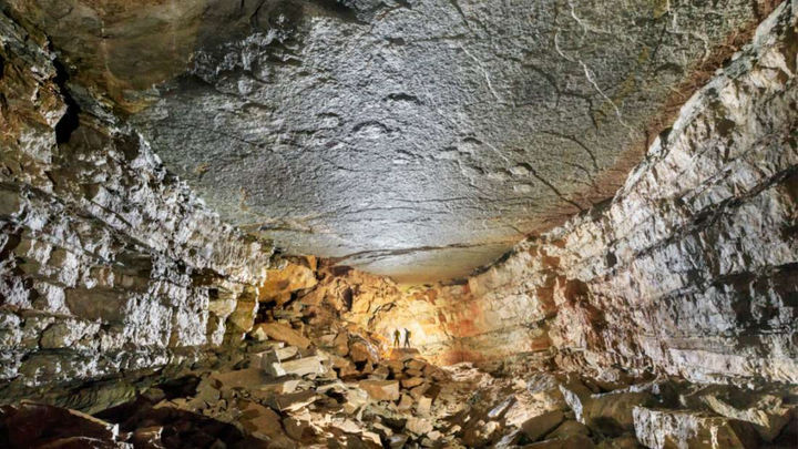 Kinh ngạc phát hiện dấu chân khủng long trên nóc hang động
