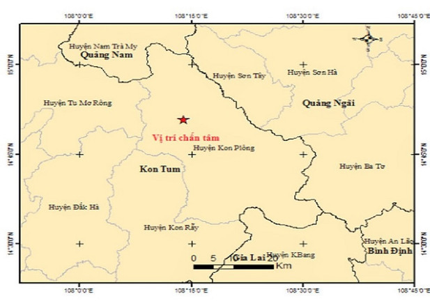 Trận động đất mới nhất xảy ra tại khu vực huyện Kon Plông, tỉnh Kon Tum có độ lớn 3.7 richter.