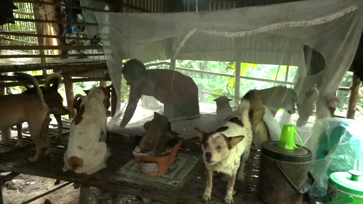 Đàn chó gần 30 của vợ chồng anh Tăng Văn Út (Tịnh Biên, An Giang) được chăm sóc rất chu đáo, đàn thú cưng ăn mỗi ngày 3 bữa, đặc biệt được ngủ mùng và sưởi ấm.