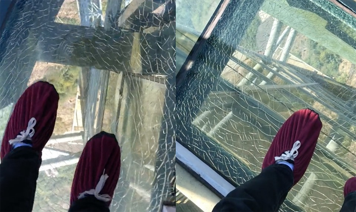 Hình ảnh cầu kính Rồng Mây với hiệu ứng nứt, vỡ gây xôn xao dư luận.