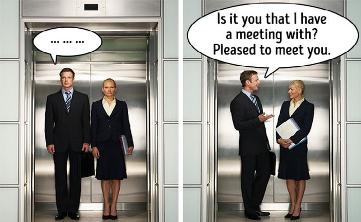 Bắt đầu cuộc trò chuyện trong thang máy hoặc khi đi cầu thang bộ đến văn phòng là một cách tuyệt vời để bạn có thể chào hỏi và giới thiệu đôi chút về bản thân bằng 3-4 câu. Việc chủ động bắt chuyện trong một tình huống không có sự chuẩn bị sẵn sẽ giúp bạn dễ thích nghi hơn với hoàn cảnh. Bên cạnh đó, đối phương cũng dễ dàng ấn tượng với bạn về sự thân thiện và biết đâu người đó sẽ là đồng nghiệp thân thiết của bạn sau này.