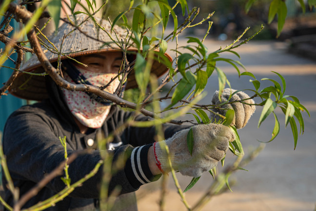 Như thông lệ, những ngày cuối tháng 10 âm lịch, người dân làng đào Nhật Tân (Hà Nội) lại tất bật tuốt lá, nuôi mắt, nuôi nụ, chuẩn bị đào cho Tết Nguyên đán.