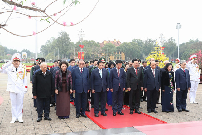 Nhân dịp Tết Nguyên đán Giáp Thìn 2024, sáng 7/2 (28 tháng Chạp), đoàn đại biểu lãnh đạo, nguyên lãnh đạo Đảng, Nhà nước cùng các Bộ, ngành Trung ương và TP Hà Nội đến đặt vòng hoa, vào Lăng viếng Chủ tịch Hồ Chí Minh.