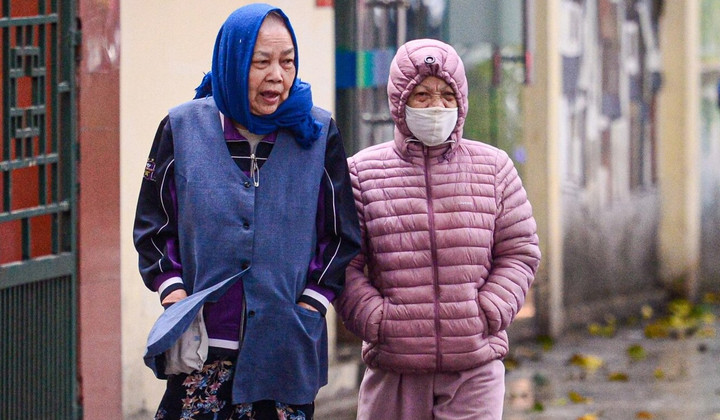 Nhiều cụ già phải mặc áo rét, quàng thêm khăn ấm trong buổi sáng đầu đông. (Ảnh: Đắc Huy)