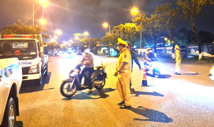 Lực lượng Cảnh sát Giao thông Công an TP Đà Nẵng lập chốt kiểm tra nồng độ cồn đối với người tham gia giao thông. (Ảnh: Xuân Tiến)