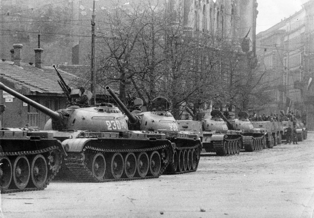 T-55 là xe tăng chủ lực của Liên Xô trong những năm 1950. Chiếc T-55 trong video phun ra những luồng lửa khổng lồ từ hai bên sườn, khi chiếc xe tăng nặng 40 tấn này lao trên một địa hình rộng.