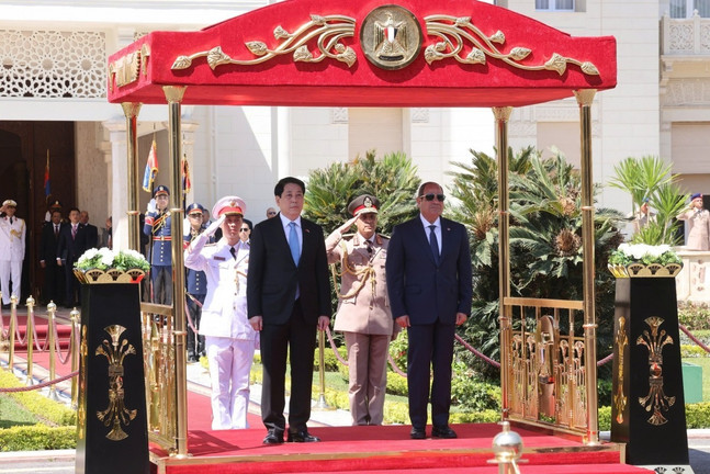11h trưa 5/8 (theo giờ địa phương), lễ đón Chủ tịch nước Lương Cường và Phu nhân thăm cấp Nhà nước Ai Cập đã diễn ra ở Thủ đô Cairo.