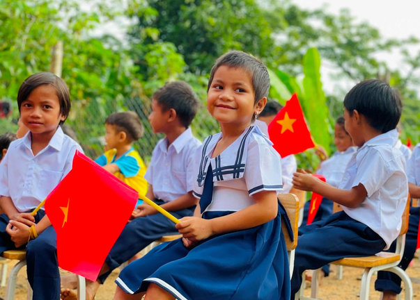 Lễ khai giảng năm học mới bình dị, ấm áp trên dãy Ngọc Linh của cô và trò điểm trường Lăng Lương (trường Phổ thông dân tộc bán trú Tiểu học Trà Tập - Quảng Nam).