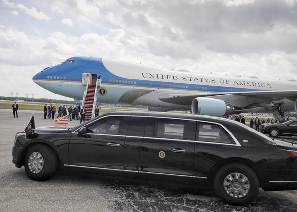 Cơ quan Mật vụ Mỹ luôn chuẩn bị cho mọi kịch bản có thể xảy ra nhằm đảm bảo an toàn cho người đứng đầu Nhà Trắng. Theo đó, một chuyến đi bằng xe hơi của Tổng thống thường không kéo dài quá 30 phút. Nếu thời gian di chuyển vượt quá mức này, ông sẽ được khuyến nghị sử dụng trực thăng Marine One hoặc chuyên cơ Air Force One. Khi di chuyển xa, Không quân Mỹ không chỉ vận chuyển chiếc limousine chống đạn trị giá 1,5 triệu USD mà còn cả đoàn xe đi kèm.