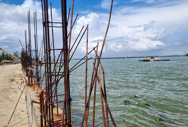 Trước tình trạng xâm thực ngày càng nghiêm trọng khiến đất đai, nhà cửa bị sóng "nuốt chửng", người dân ở Quảng Nam đã tự bỏ tiền để dựng kè bê tông cốt thép.