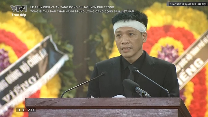 Đại diện gia đình, anh Nguyễn Trọng Trường, con trai Tổng Bí thư Nguyễn Phú Trọng đọc lời cảm tạ tại lễ truy điệu.