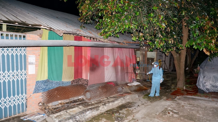 Ngành chức năng phun khử trùng tại gia đình có 4 người mắc COVID-19 ở ấp 3, xã Tân Thành, huyện Tân Thạnh. (Ảnh: Báo Long An)