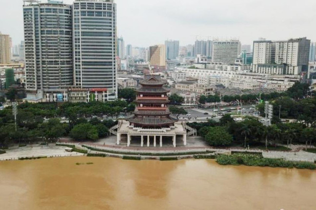 Mực nước dâng cao trên một con sông ở thành phố Nam Ninh, Quảng Tây, Trung Quốc. (Ảnh: Chinanews).