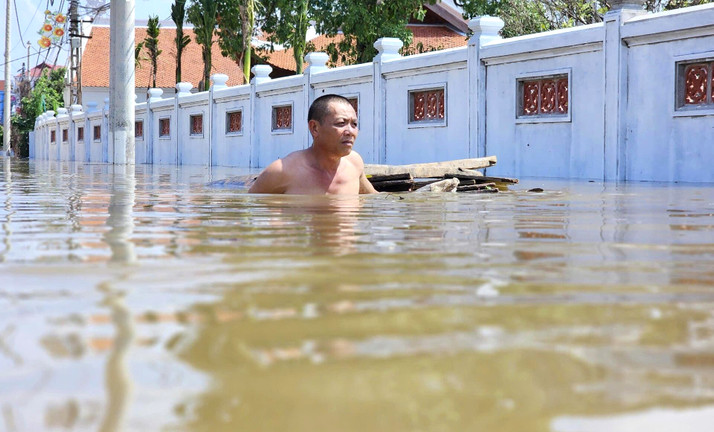 Thôn Kim Tiên, xã Thư Lâm (Hà Nội) đang phải gánh chịu những hậu quả nặng nề nhất của trận lụt lịch sử. Cả khu dân cư bị cô lập hoàn toàn, chìm sâu trong biển nước đục ngầu, biến nhà cửa, đường làng thành những "ốc đảo" mong manh. Cuộc sống người dân bị đảo lộn chưa từng có.