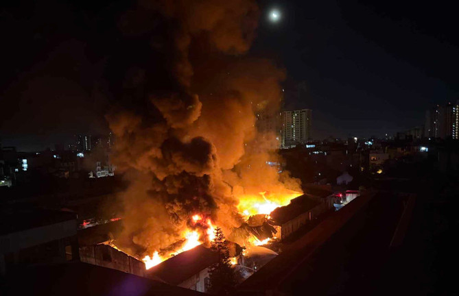 Đám cháy ngụt ngụt xảy ra lúc nửa đêm.