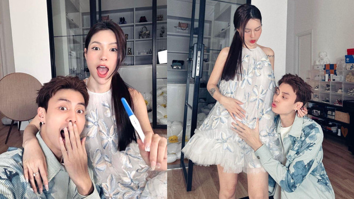 Trên trang cá nhân, Lucie Nguyễn chia sẻ hình ảnh que thử thai hiện rõ hai vạch với dòng trạng thái: "Ba Dương và mẹ Lucie chào cả nhà ạ". Lần đầu "lên chức" mới, cặp đôi không giấu được vẻ hạnh phúc trên gương mặt mình.