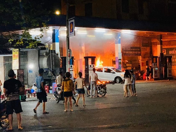 Tài xế ô tô lùi xe bất cẩn tông trúng trụ cột bơm xăng khiến xăng trào ra và bốc cháy, ô tô và một xe máy khác bị lửa thiêu rụi.