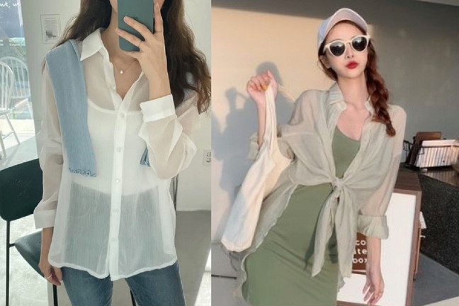 Khoác áo sơ mi voan mỏng ngoài váy liền