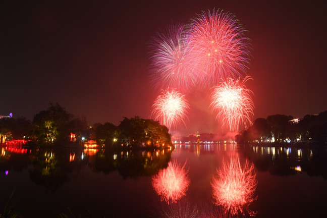 Chiêm ngưỡng màn pháo hoa lung linh rực sáng bầu trời Hà Nội đón năm mới 2024