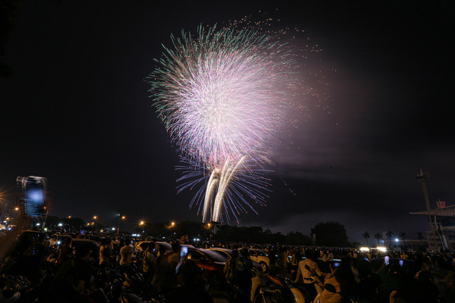 Màn pháo hoa rực rỡ thắp sáng bầu trời Hà Nội, mang đến cảm xúc vỡ òa cho hàng ngàn khán giả dịp 50 năm Giải phóng miền nam, thống nhất đất nước.