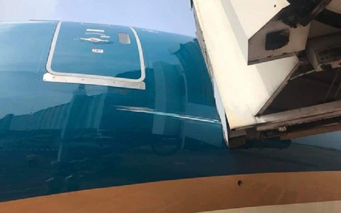 Máy bay của Vietnam Airlines bị va quẹt vào cầu ống dẫn tại sân bay Tân Sơn Nhất sáng 25/6.