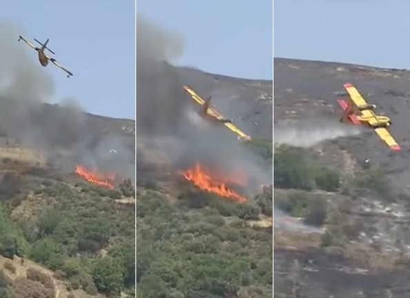 Khi vừa hạ độ cao mở khoang chứa nước chiếc máy bay cứu hỏa của Hy Lạp bất đầu mất kiểm soát và đấm xuống một sườn núi gần đó.