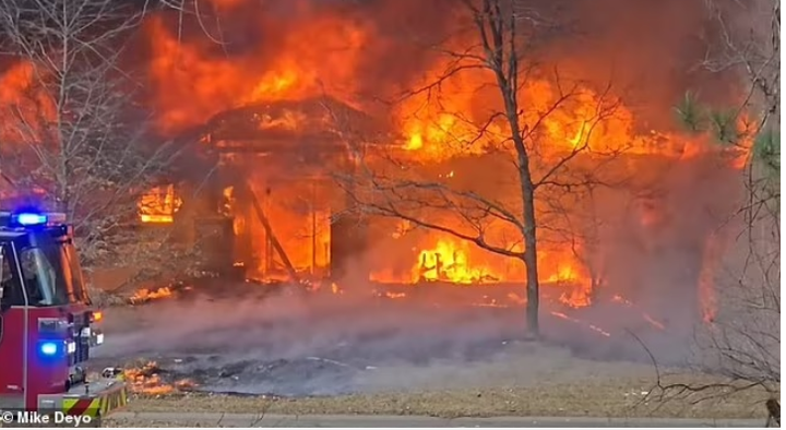 Đoạn video trên mạng xã hội ghi lại cảnh tượng ngôi nhà chìm trong biển lửa sau khi bị chiếc máy bay nhỏ đâm vào.