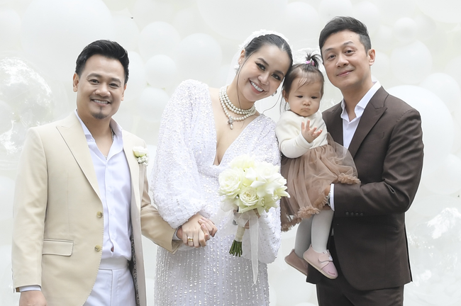 Được biết, con gái MC Anh Tuấn vừa tròn 1 tuổi. Vì bố mẹ thân thiết với cô dâu và chú rể nên cô công chúa nhỏ khá thoải mái khi tham gia tiệc cưới.
