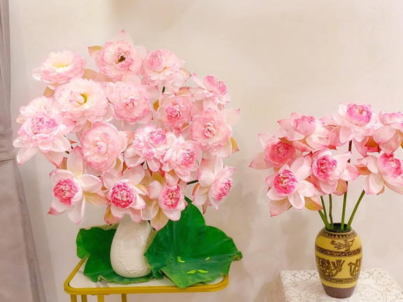 Cũng là người yêu hoa, chị Thanh Hoa (Quảng Ninh) muốn lan toả sự an yên đến mọi người bằng bình sen Nghi Lương.