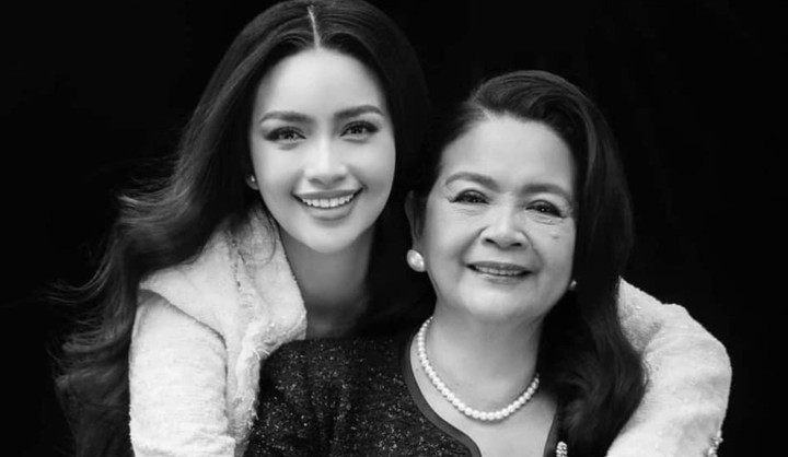Hoa hậu Ngọc Châu và mẹ.
