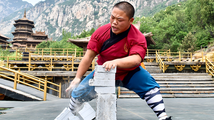 Ngày 11/5, tại buổi biểu diễn thực cảnh có tên “Thiền Tông Thiếu Lâm – Đại nhạc kịch”, các tiết mục như quyền pháp Thiếu Lâm truyền thống, La Hán trận và 18 loại binh khí lần lượt xuất hiện. Nhưng điều khiến khách tham quan ấn tượng nhất vẫn là màn trình diễn đập vỡ gạch của 1 thiếu niên luyện võ công Thiếu Lâm.