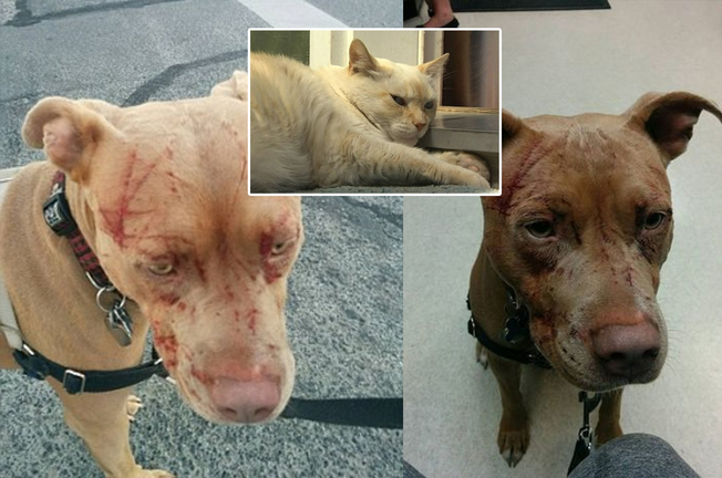 Đàn pitbull không cắn lại con mèo hung dữ mà chỉ sủa ầm ĩ. “Chúng không biết làm gì vì bị con mèo bám chặt vào mặt." – cô Javiera kể. Con chó ba tuổi của cô, Bandida, bị trầy xước ở mặt, tai và cằm. Javiera cũng bị xây xát trong vụ tấn công. Cô mô tả con mèo có kích thước trung bình với bộ lông trắng mịn.