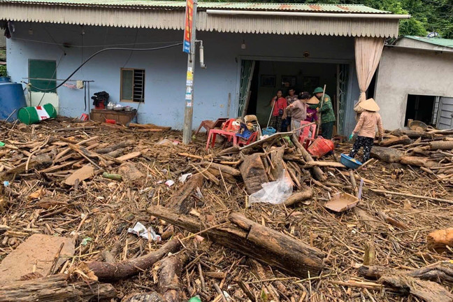 Nhà cửa người dân ngập rác, tan hoang sau lũ.