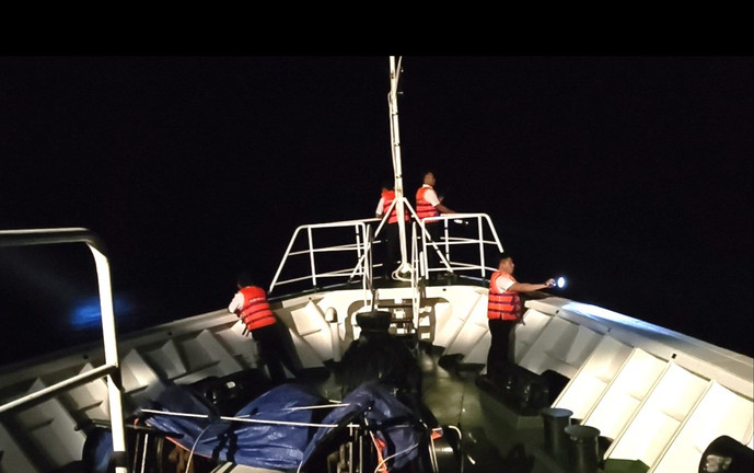 Tàu Cảnh sát biển 8002 đang mở rộng phạm vi tìm kiếm 13 ngư dân mất tích sau khi 2 tàu cá Quảng Nam bị chìm ngoài khơi.