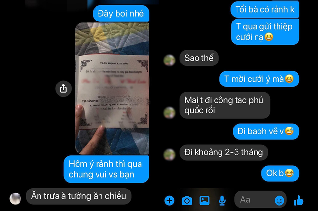 “Giọng mời cưới của anh, nếu em là bạn anh em cũng chẳng muốn đi ạ. Chụp cái thiệp mời thế, lúc cưới chụp lại tờ tiền gửi được không ạ…”