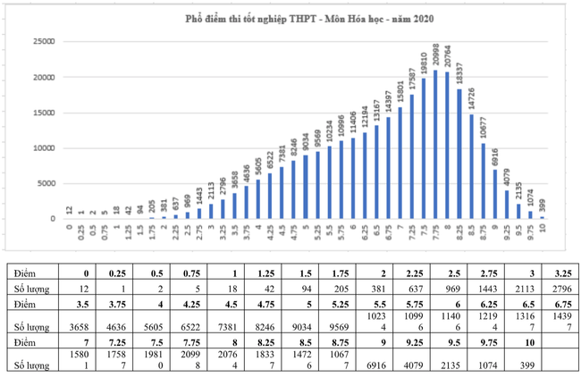 Theo thống kê của Bộ GD&ĐT, môn Hoá học có 12 thí sinh 0 điểm và 399 em đạt điểm 10.
