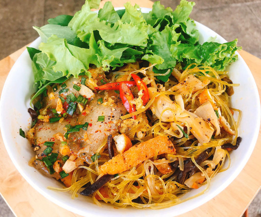 Sau cùng, người bán sẽ cho tất cả hỗn hợp trên mỗi thứ một ít vào tô, trộn đều cùng rau sống, thêm chút lạc rang, ớt và tương… Lúc này, món mít thấu đã sẵn sàng để thưởng thức.