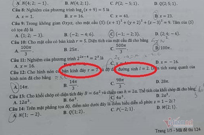 Một số câu hỏi trong đề Toán thi tốt nghiệp THPT đợt 2 chưa chính xác?