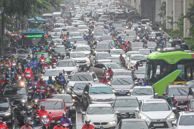 Người tham gia giao thông nhích từng chút để kịp đến chỗ làm trong giờ cao điểm.