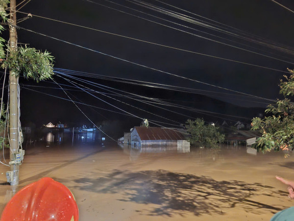 Cơn mưa nặng hạt kéo dài nhiều giờ khiến hàng trăm hộ dân ở xã Hiệp Thạnh, tỉnh Lâm Đồng bị ngập sâu trong nước.