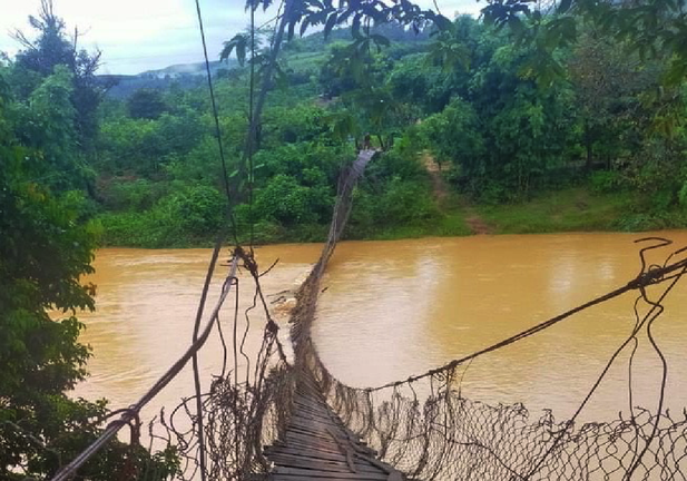 Mưa lớn làm sập cầu treo ở Kon Tum, nhiều hộ dân bị chia cắt