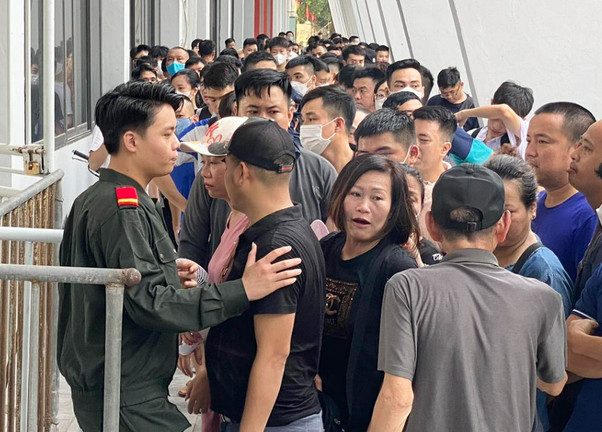 Người hâm mộ đến xếp hạng chật kín ở hành lang bên ngoài cồng phát vé từ rất sớm. Nhiều cổ động viên bày tỏ sự không hài lòng, cảm thấy bất tiện khi mua vé trực tuyến nhưng vẫn phải đến xếp hàng lấy vé giấy.