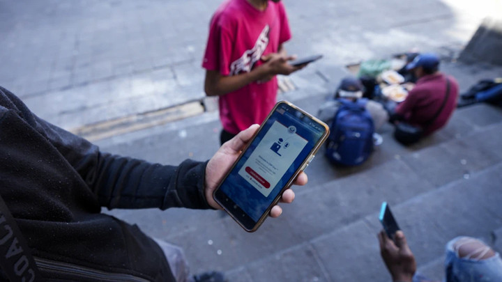 Ứng dụng One của Cơ quan Hải quan và Bảo vệ Biên giới Mỹ tại trại lều di cư ở Mexico City, 20/1/2025. (Ảnh: AP)