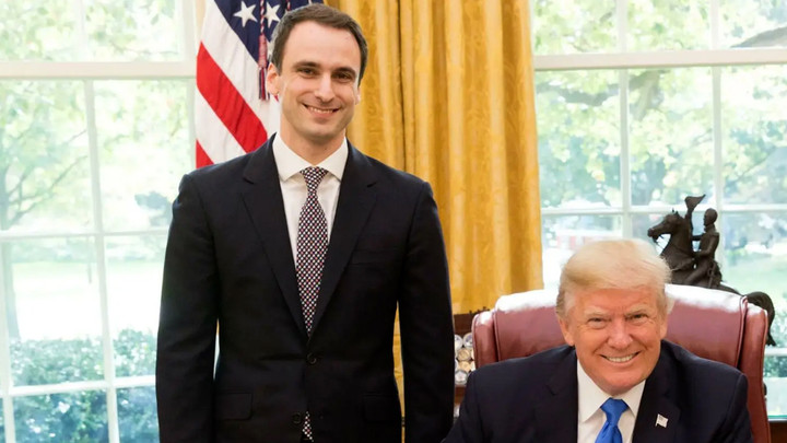 Cố vấn khoa học hàng đầu của Nhà Trắng, ông Michael Kratsios (bên trái) đứng cạnh Tổng thống Mỹ Donald Trump. (Ảnh: X)