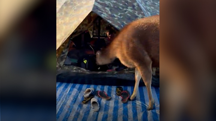 Nai liều lĩnh mò vào lều tìm thức ăn