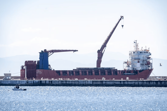 Tàu Lady R của Nga neo đậu tại Căn cứ Hải quân Simon's Town gần Cape Town, Nam Phi vào tháng 12/2022. (Ảnh: AP)