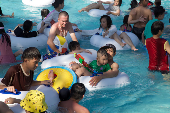 Nhiều người ở TP.HCM đến công viên nước Đầm Sen giải nhiệt trong ngày thứ 2 của kỳ nghỉ lễ 30/4 - 1/5.
